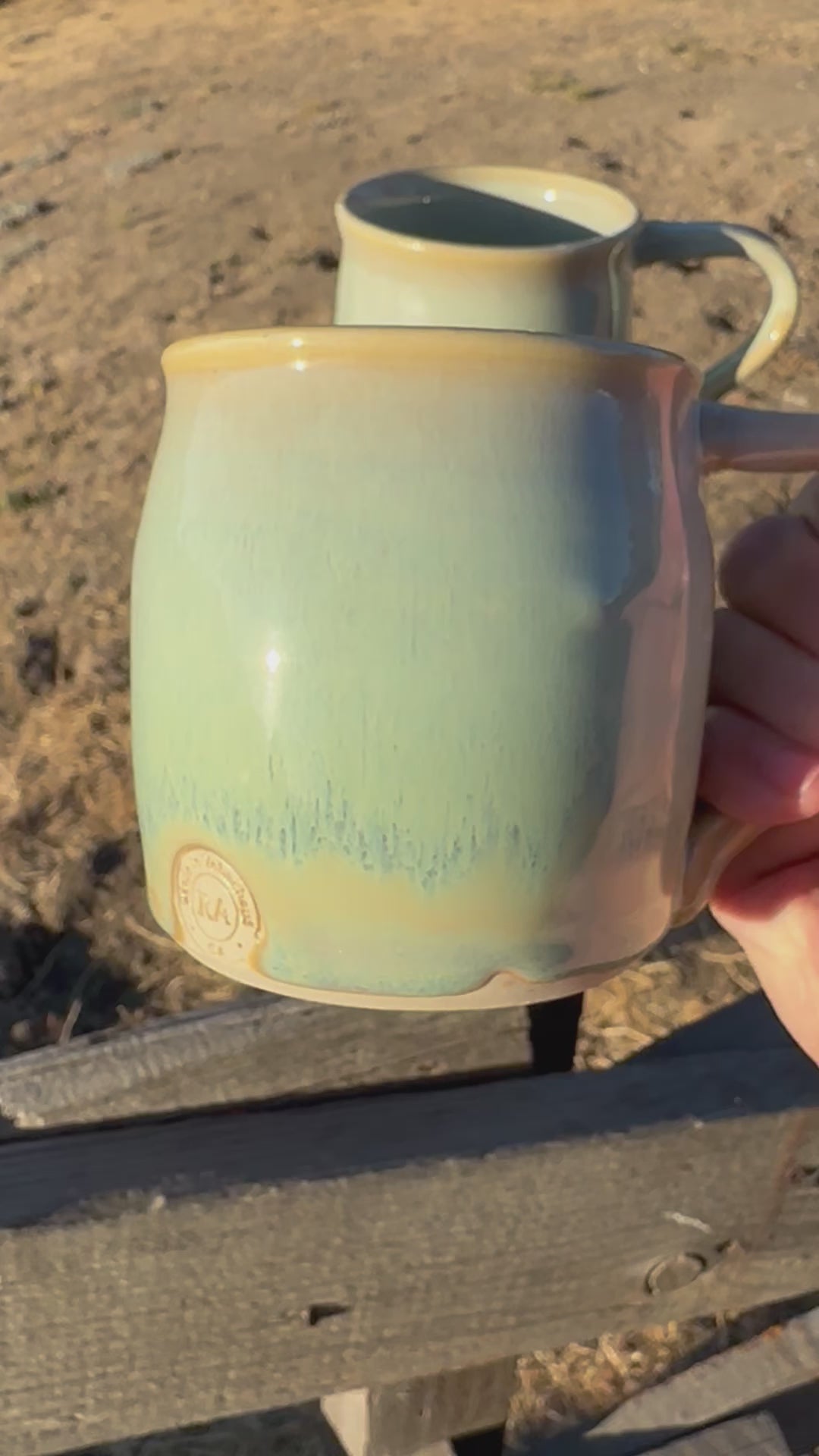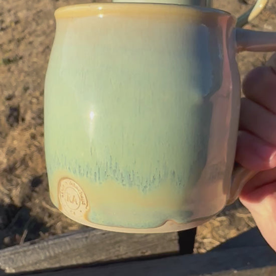 This handmade seafoam green ceramic mug is both beautiful and practical. Its stoneware material makes it sturdy and durable, while its dishwasher safe feature makes for easy cleaning. Start each day with a touch of elegance with this seafoam green mug.